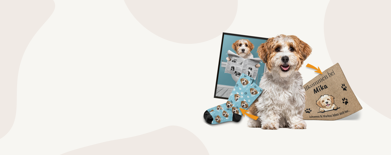 Gestalte dein Produkt so wie es dir gefällt, indem du aus über 220 Rassen wählst oder ein eigenes Foto deiner Fellnasen verwendest.